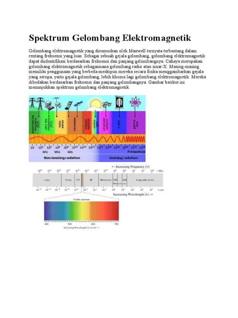Spektrum gelombang elektromagnetik dengan urutan dari panjang gelombang terbesar atau frekuensi terkecil ke panjang gelombang terkecil atau frekuensi terbesar terbagi menjadi 7 macam gelombang, yakni: Cahaya dari matahari yang sangat jauh sampai ke bumi dengan merambat secepat 300.000.000 meter per … 01/05/2016 · spektrum merupakan ragam dari rentangan panjang dari suatu gelombang radiasi. Salah satu contoh penggunaan gelombang micro yaitu pada. 20/02/2022 · spektrum gelombang radio dimanfaatkan manusia untuk teknologi radio, televisi, dan telepon.